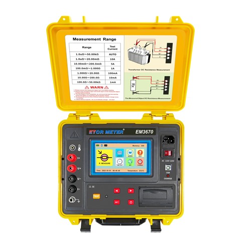 ETCR EM3670 10A High Current Dual Power Auto Mode Touch Screen Bluetooth USB Transformer DC Resistance Tester